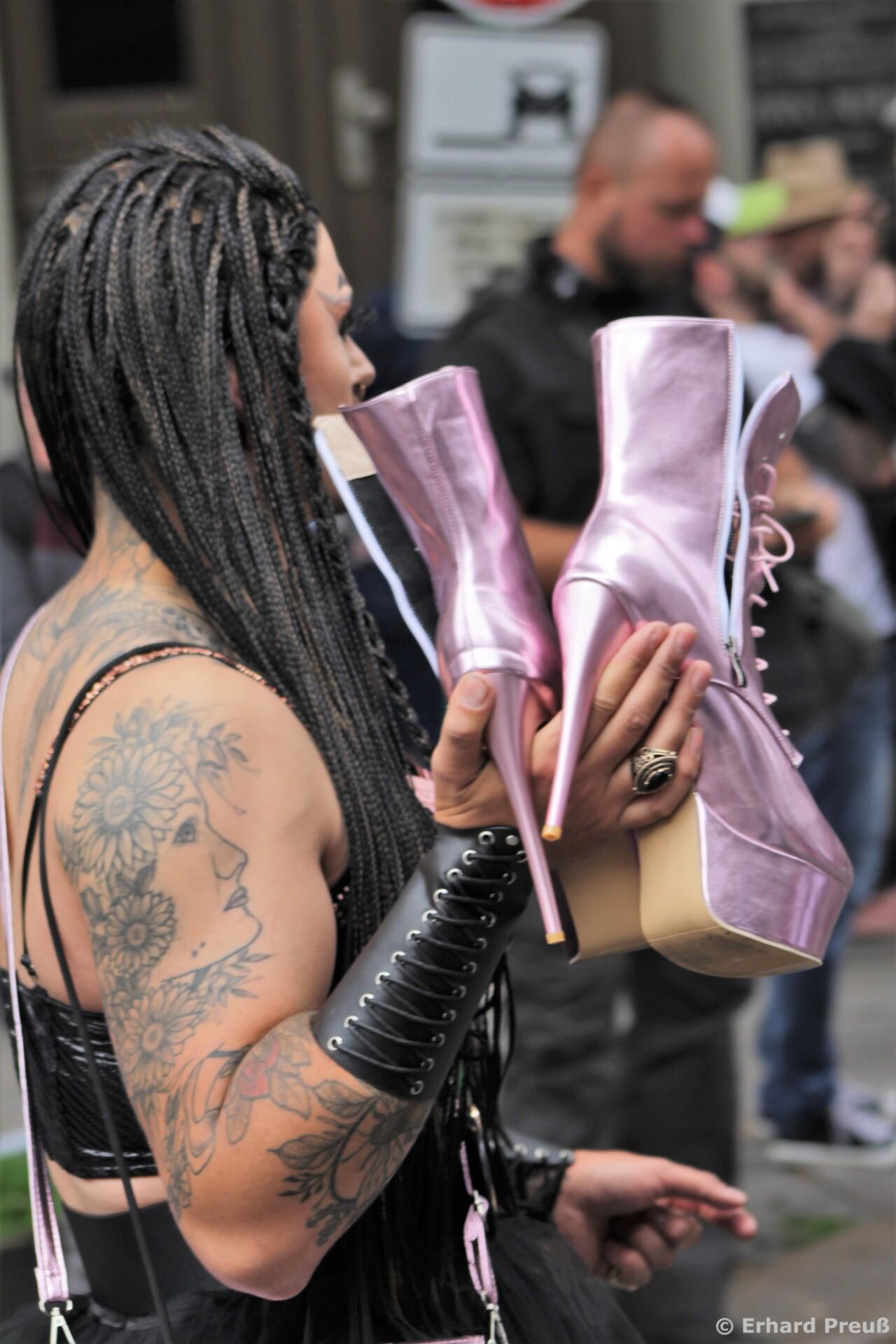 Doch lieber Turnschuhe angezogen oder auf dem Weg zum Schuster ? Beim CSD Umzug in Hamburg – 05. August 2023 –