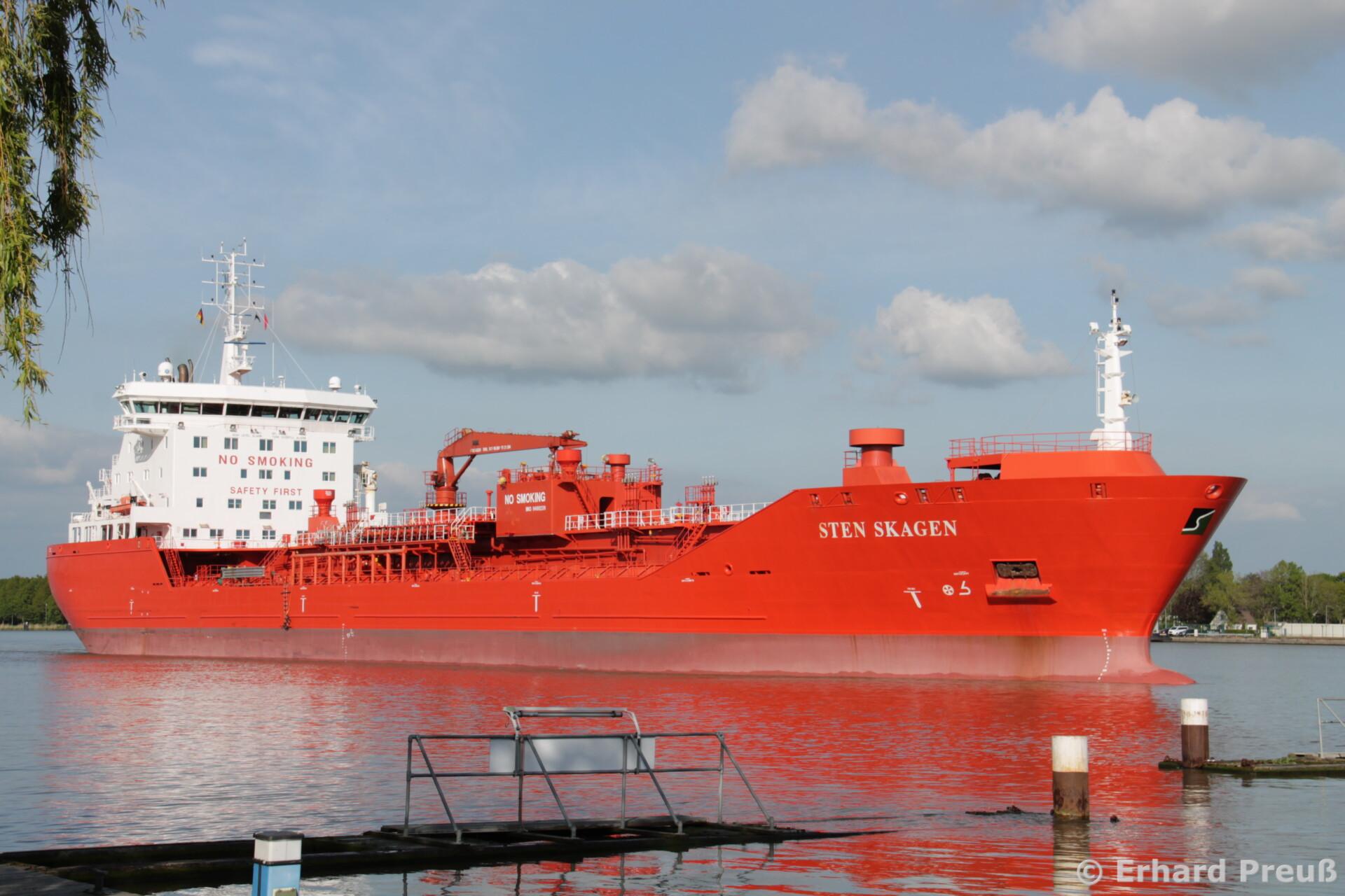 Der Tanker “ Sten Skagen “ vor der Einfahrt in den Nord-Ostsee-Kanal in Brunsbüttel – 20. Mai 2020 –