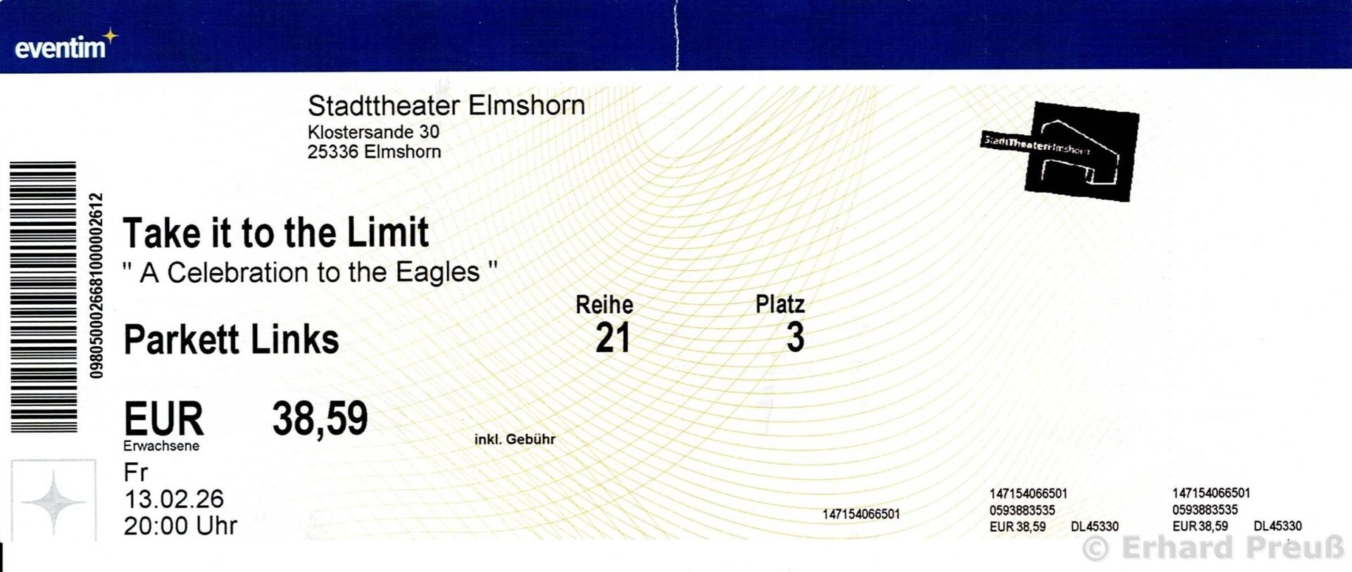 Take it to the Limit (2 Bewertungen) nächstes Konzert Konzert im Stadttheater Elmshorn am 13. Februar 2026 – A Celebration to the Eagles –